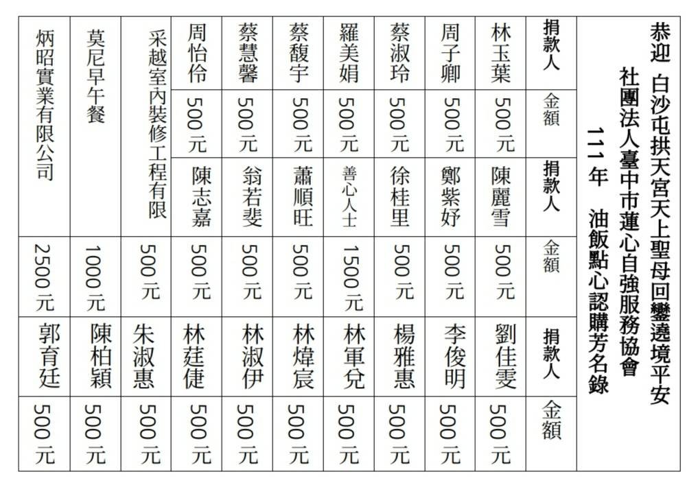 白沙屯回鑾點心站認購芳名錄公布